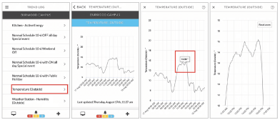 Trendlogs in the system can be displayed on the mobile app in trendlogs or as a dashboard widget. Trendlogs are first setup in Optergy and then made available to one or more users