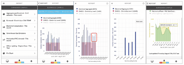 Energy reports saved in the utility report library can be displayed on the mobile app in reports or as a dashboard widget. Reports are first setup in Optergy and then made available to one or more users.